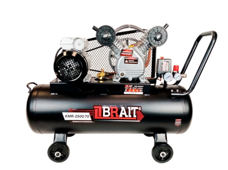 Компрессор воздушный BRAIT KMR-2500/70 (2-х цил., 2,5кВт; 450л/мин; ресивер 70л; ременной)