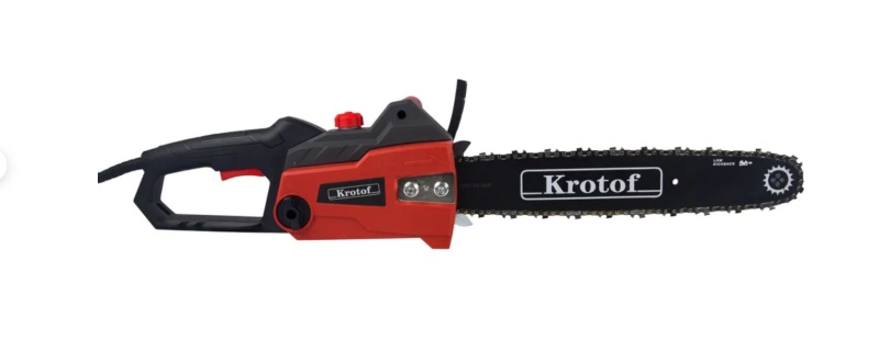 Пила электрическая цепная ECS716 Krotof - цепная пила, предназначенная для продольного и поперечного распила древесины и древесных изделий, валки небольших деревьев, спиливания веток, заготовки дров, строительства. Электропила оборудована электродвигателем мощностью в 2,5 кВт, что позволяет с лёгкостью распиливать среднегабаритную древесину.